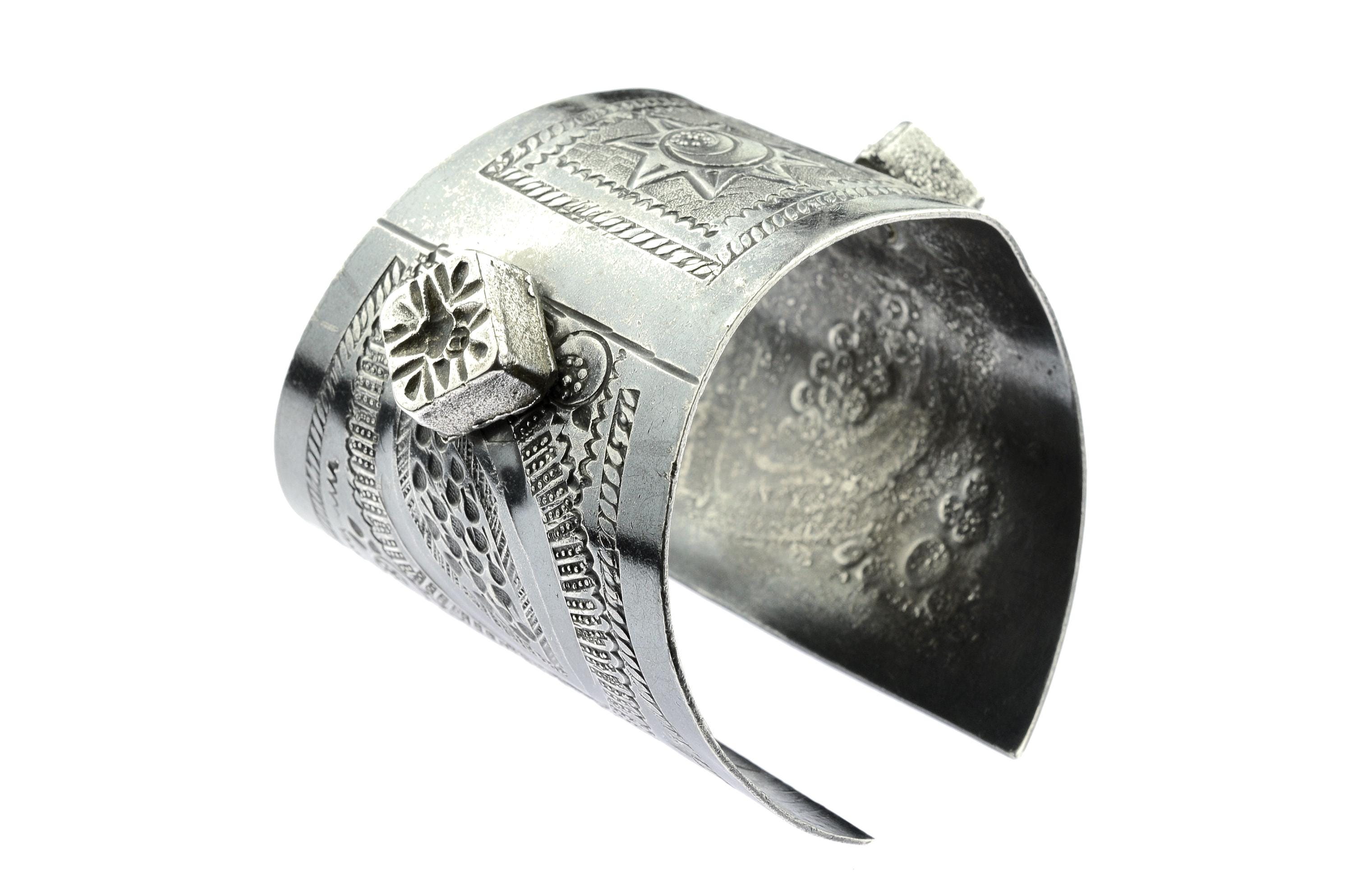 This type of heavy bracelet in chased silver was made by jewelers traveling between Tunisia, Tripoli in Libya and the Siwa Oasis in Egypt.
