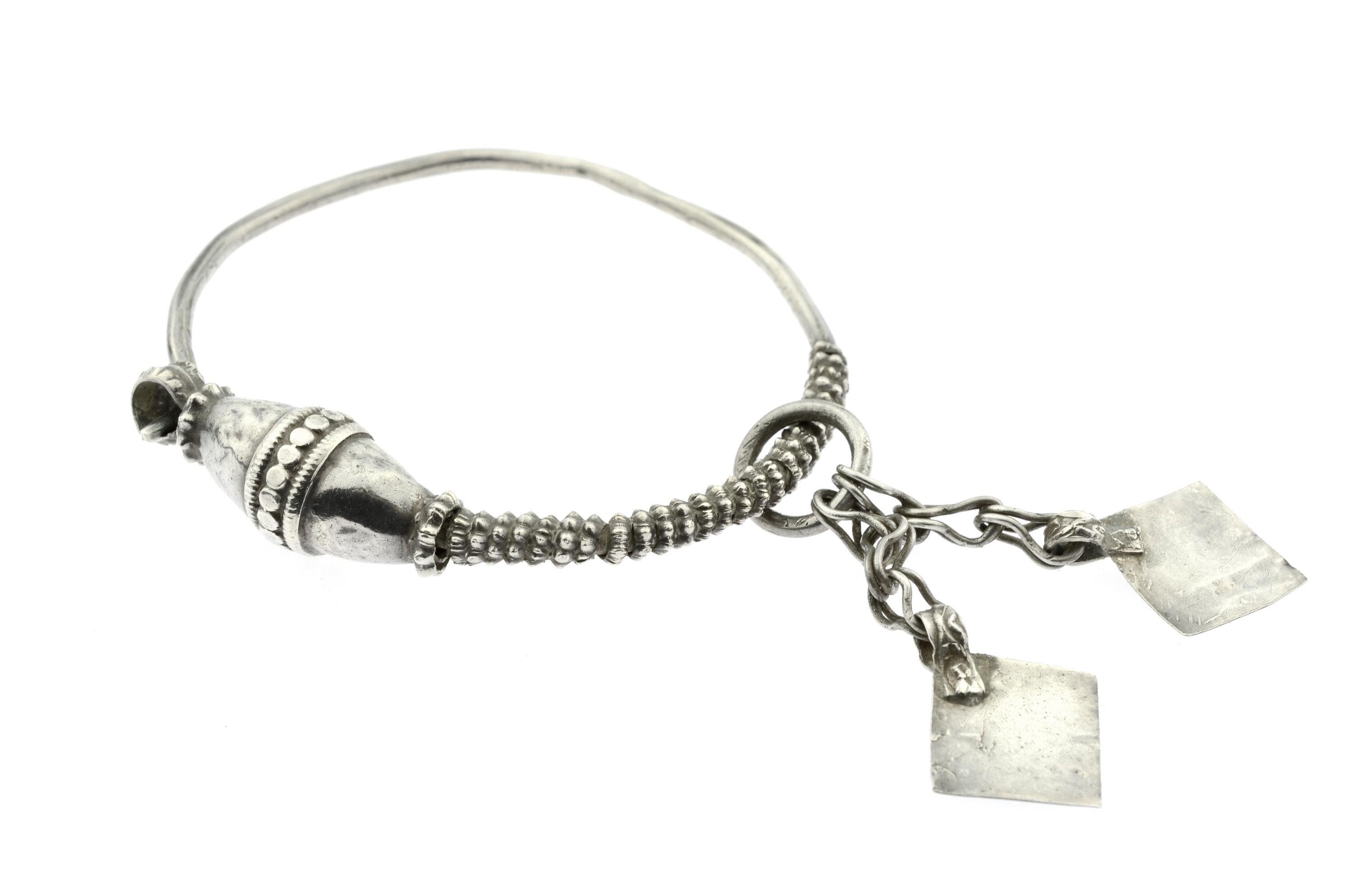 This type of earring is worn by Bedouin women from the Arabian Peninsula, the Sultanate of Oman, Yemen or Saudi Arabia.