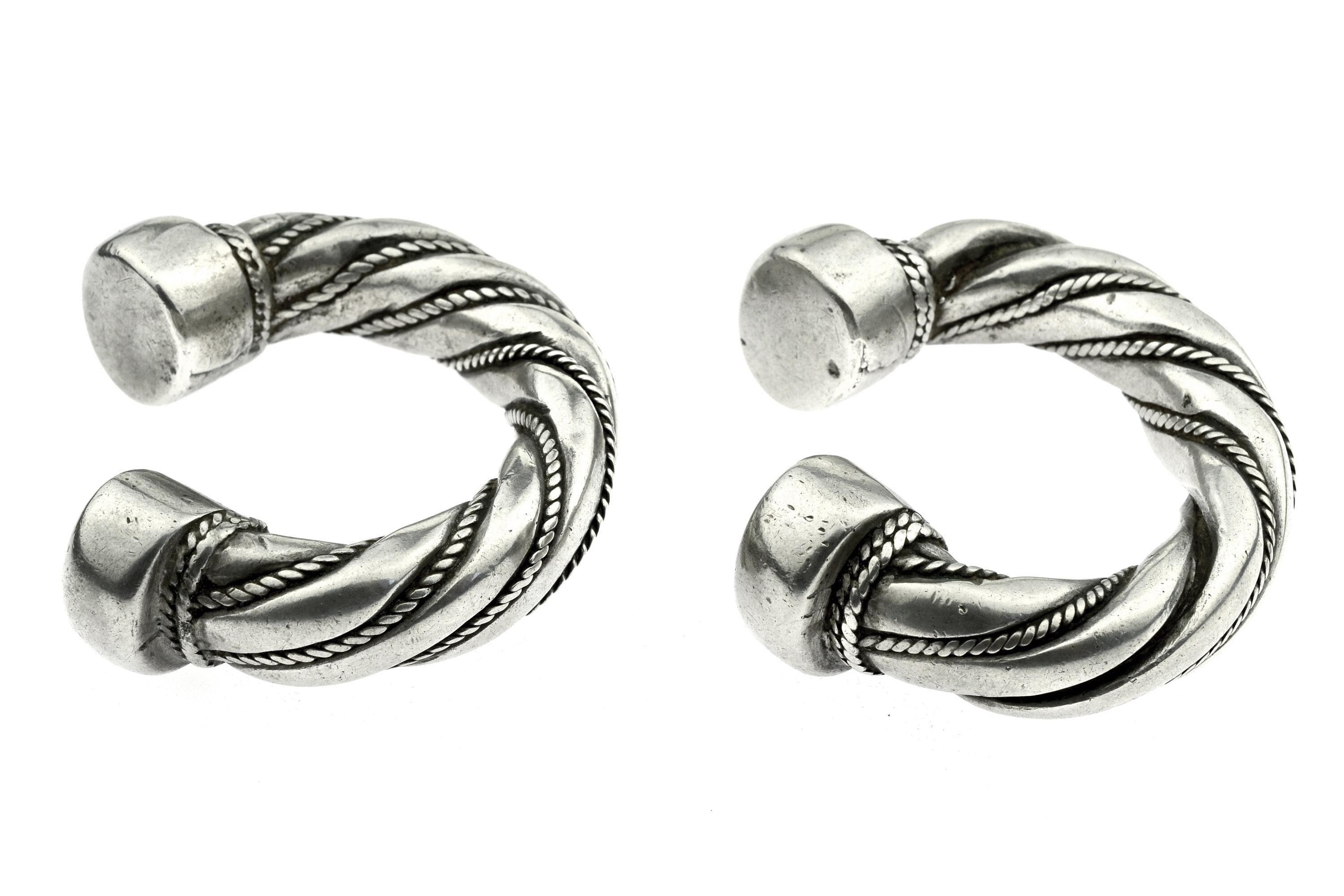 Heavy bracelets from the Najd region (Northern Saudi Arabia). Made of tubes that are twisted and decorated with roping that is wound all around and they are closed off at the end with solid caps.