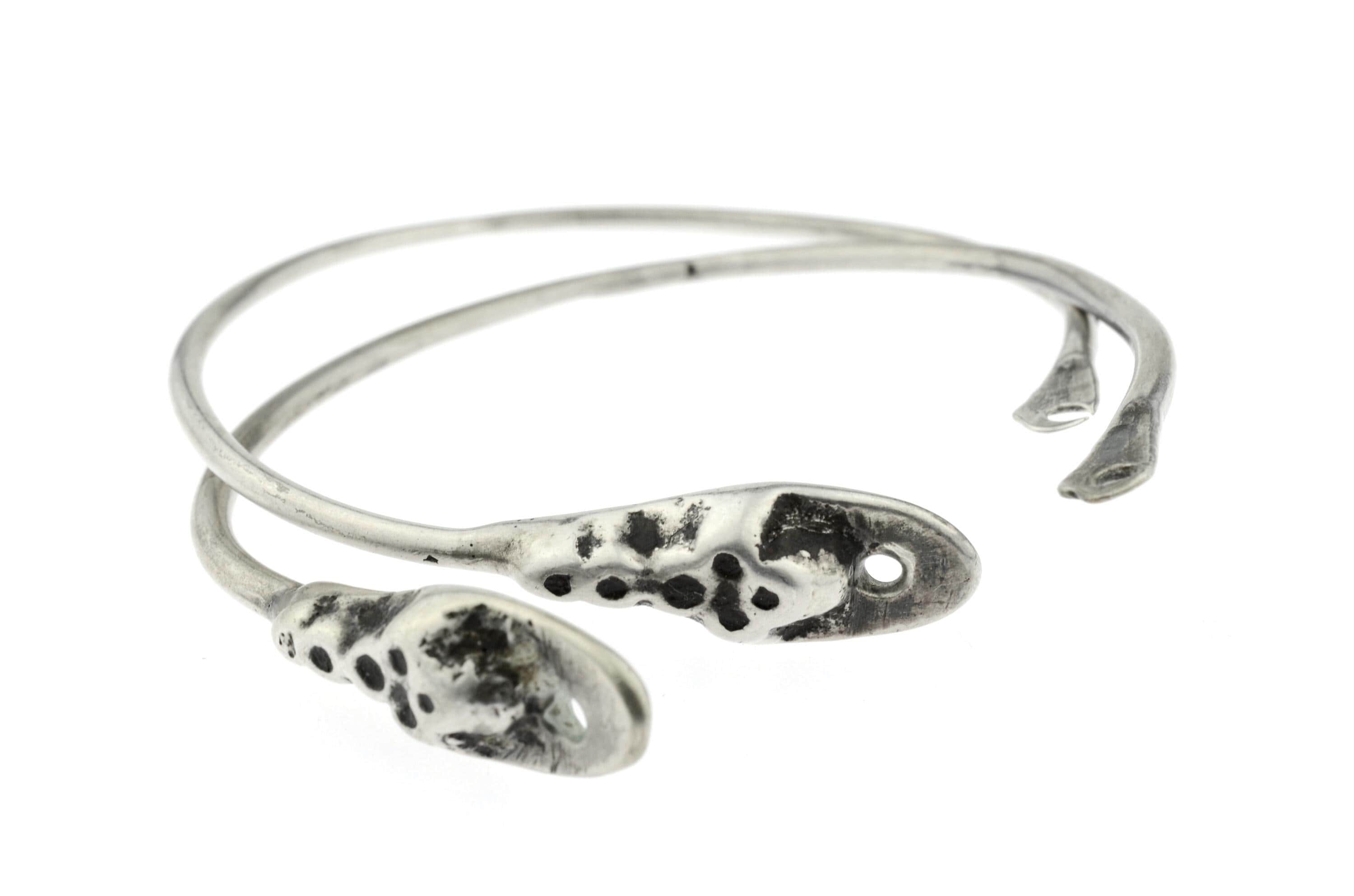 The circle shape offers many graphic and semantic possibilities, in particular symbolic. The snake head design acts as a talisman against evil spirits. The Serpent represents life in its most primitive form.