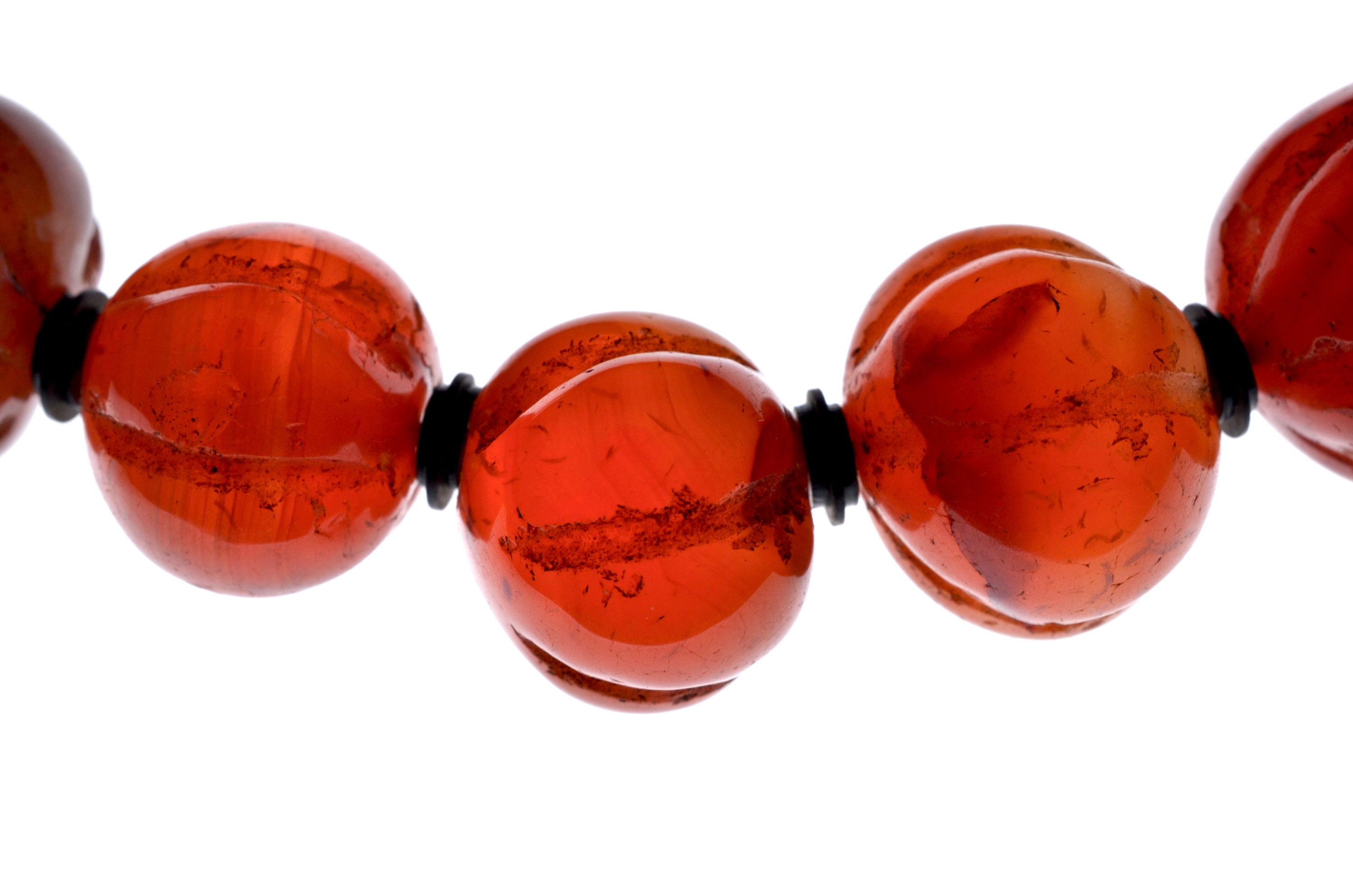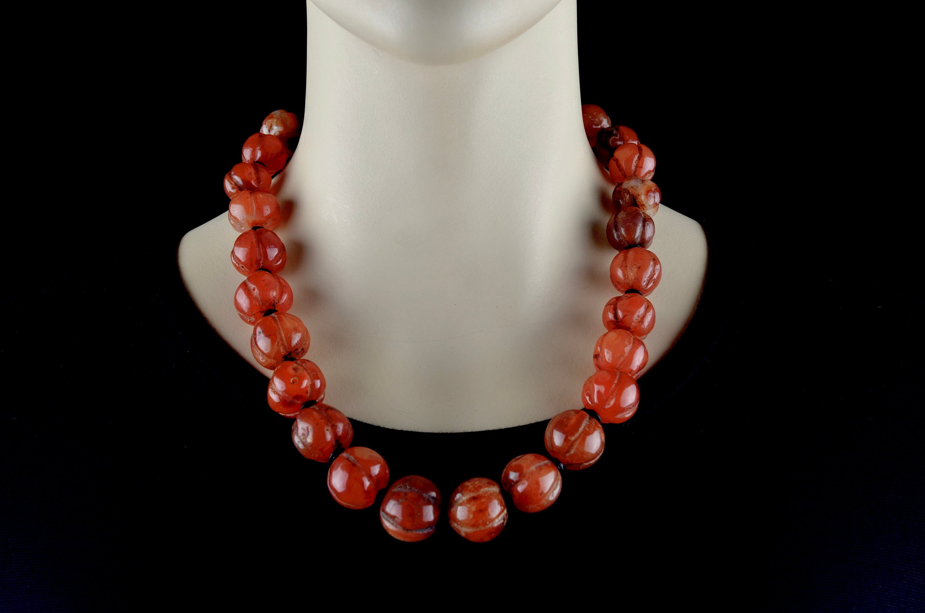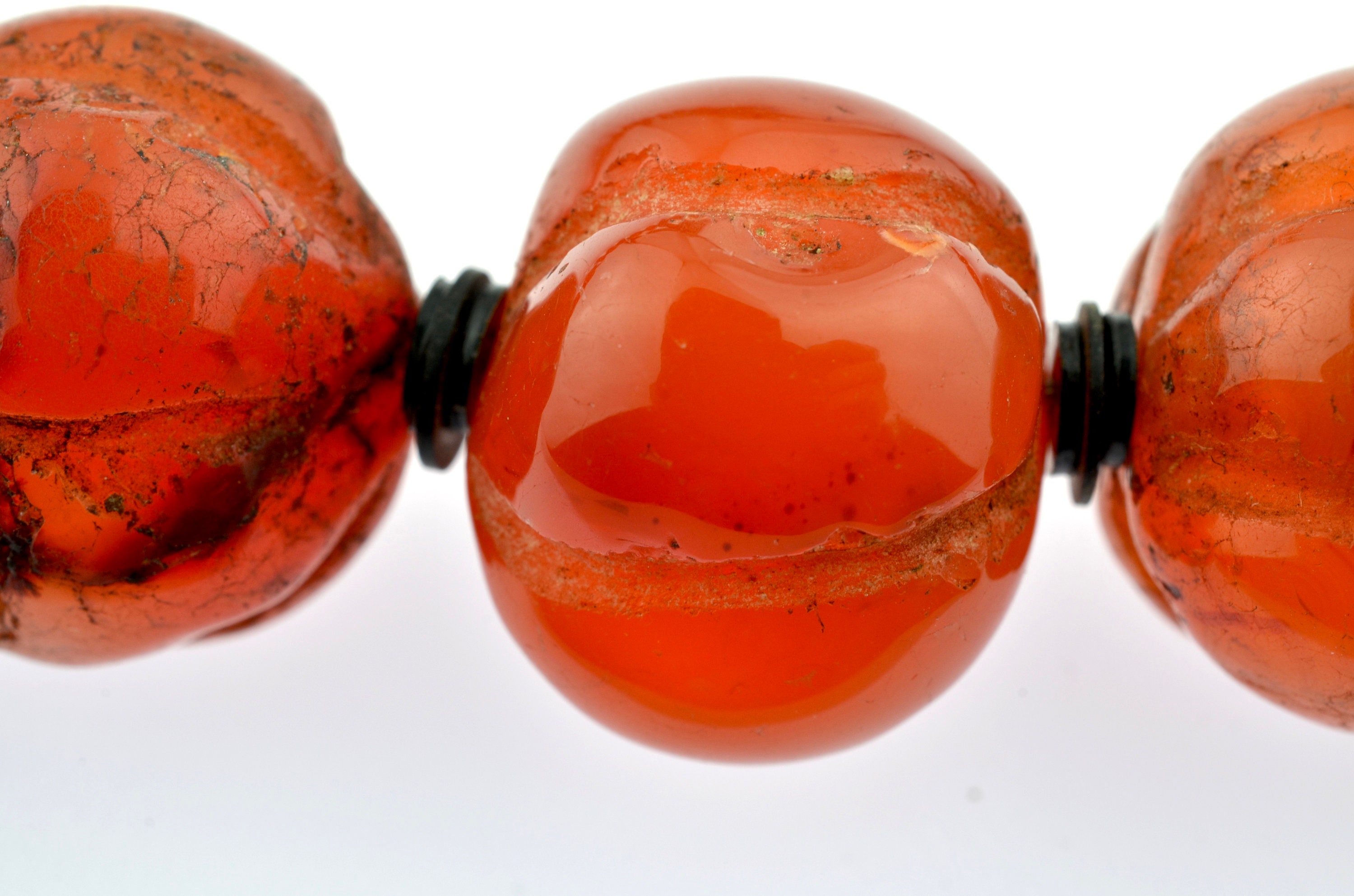 These carnelian beads in the shape of a melon are particularly popular with the people of Ladakh, Tibet, Nepal and Bhutan.