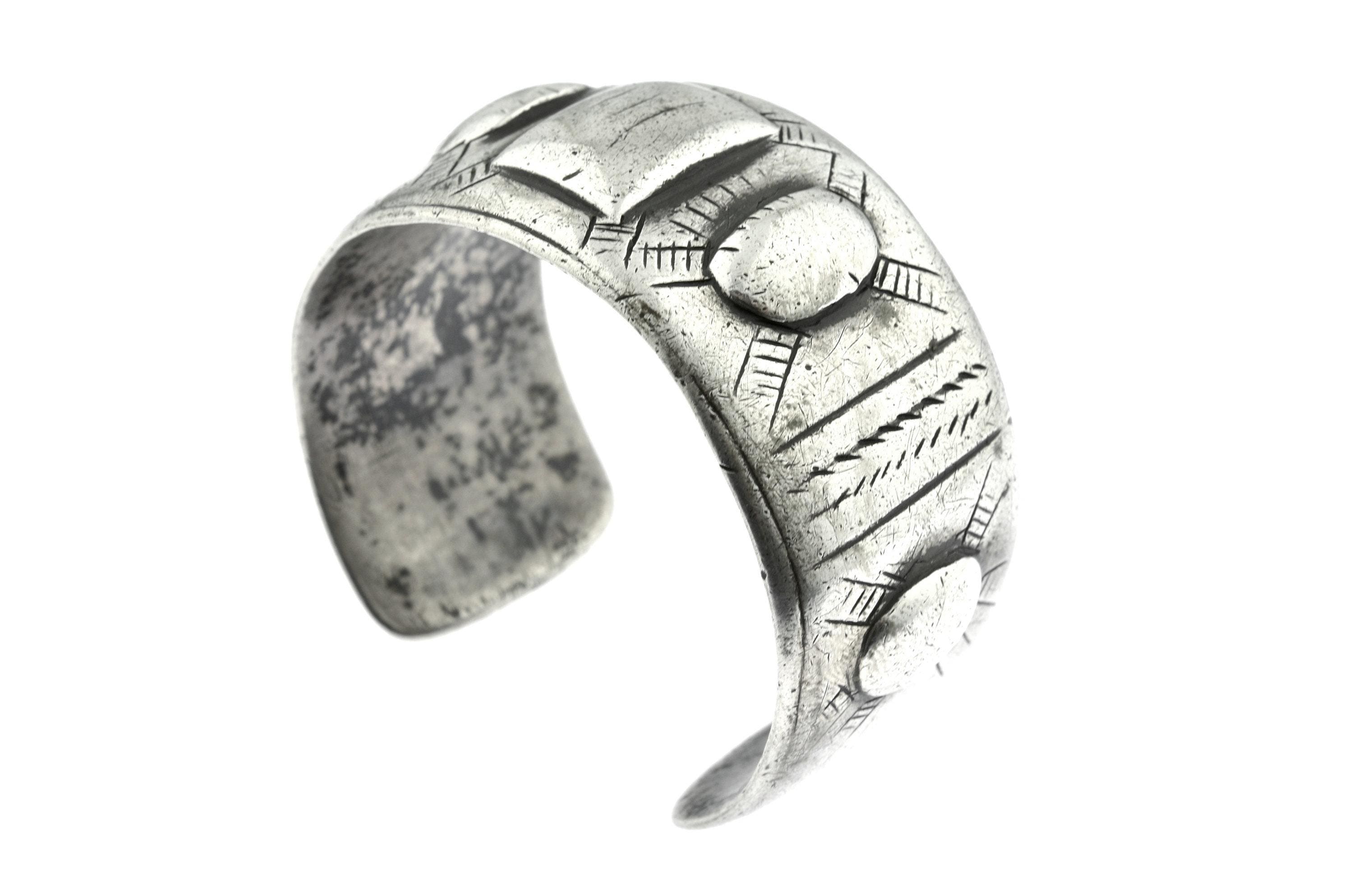 The bracelet has the Egyptian hallmark as well as assay marks (made of 80% pure silver) on the outside.