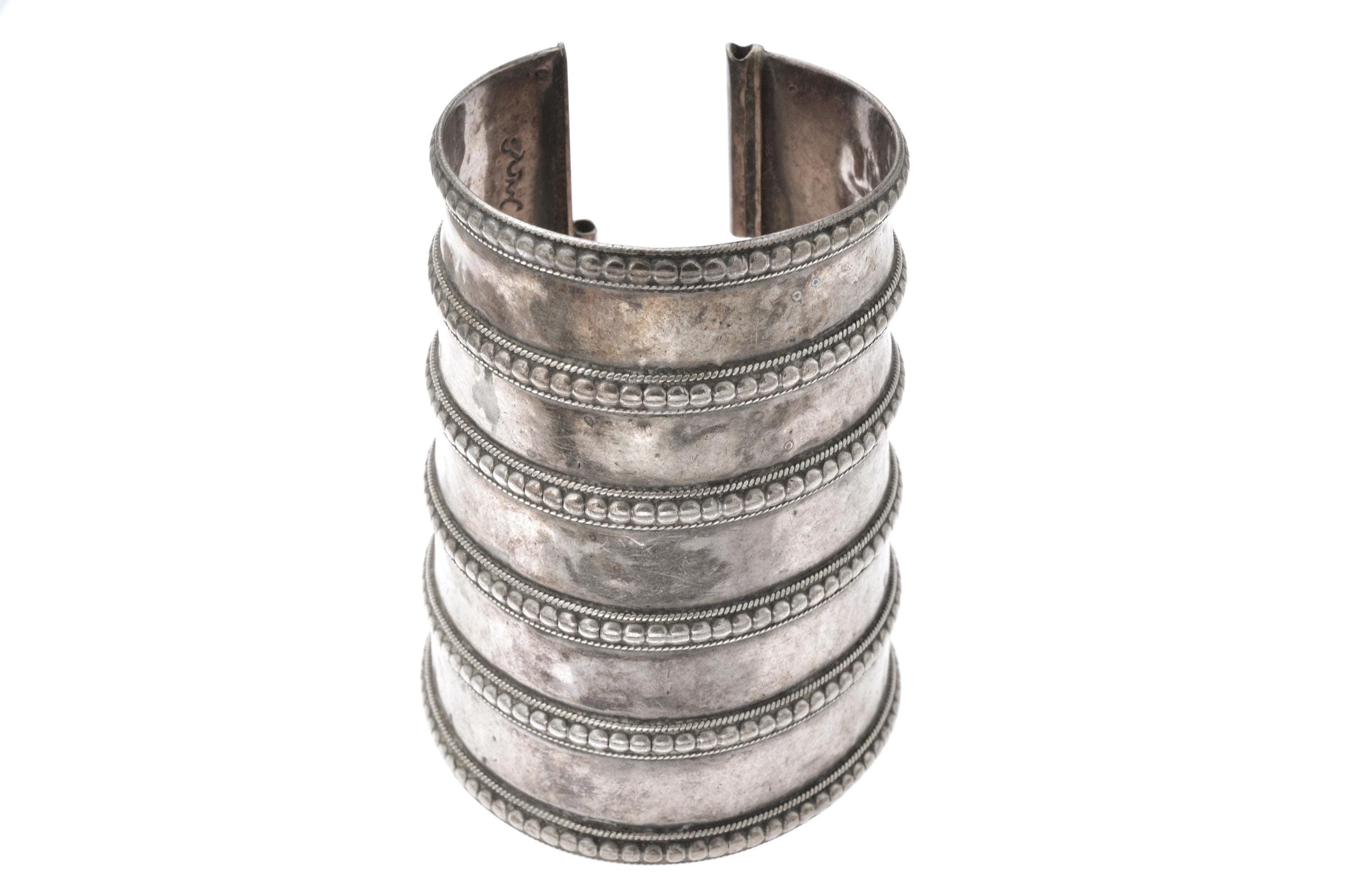 Ethnic tribal silver cuff bracelet old Rajasthan India, worn by tribal people "Banjara" of Rajasthan