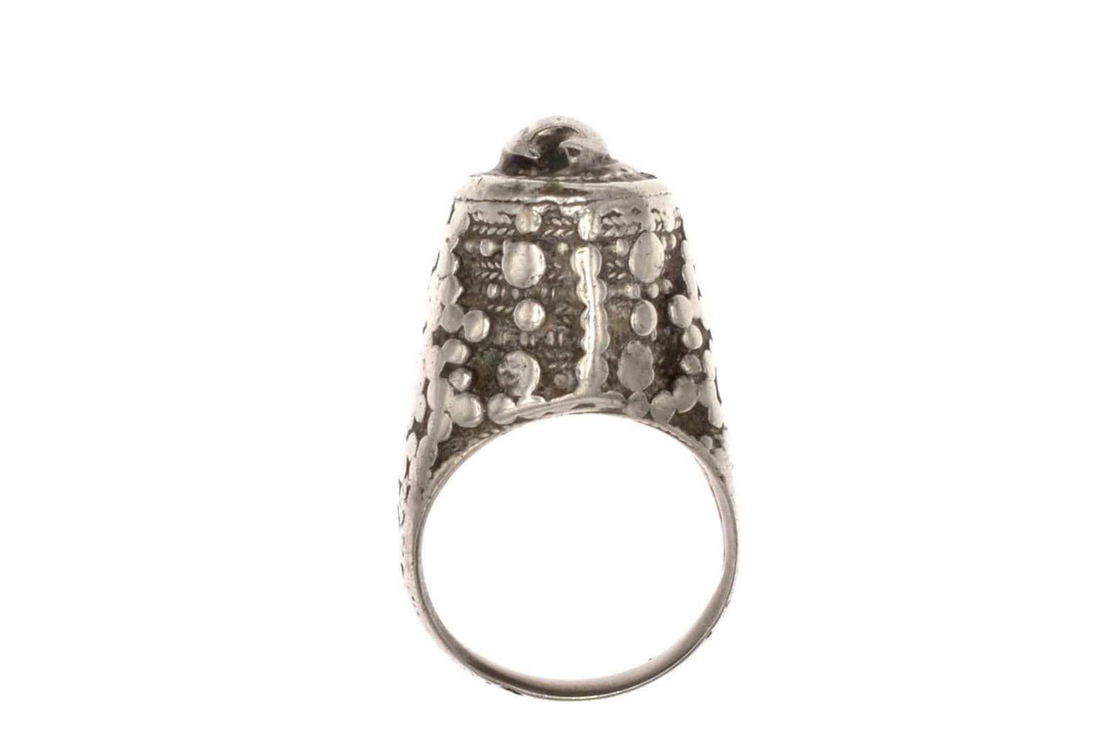 "Tower" ring from the Rashaida tribe, crafted in silver, Yemen.